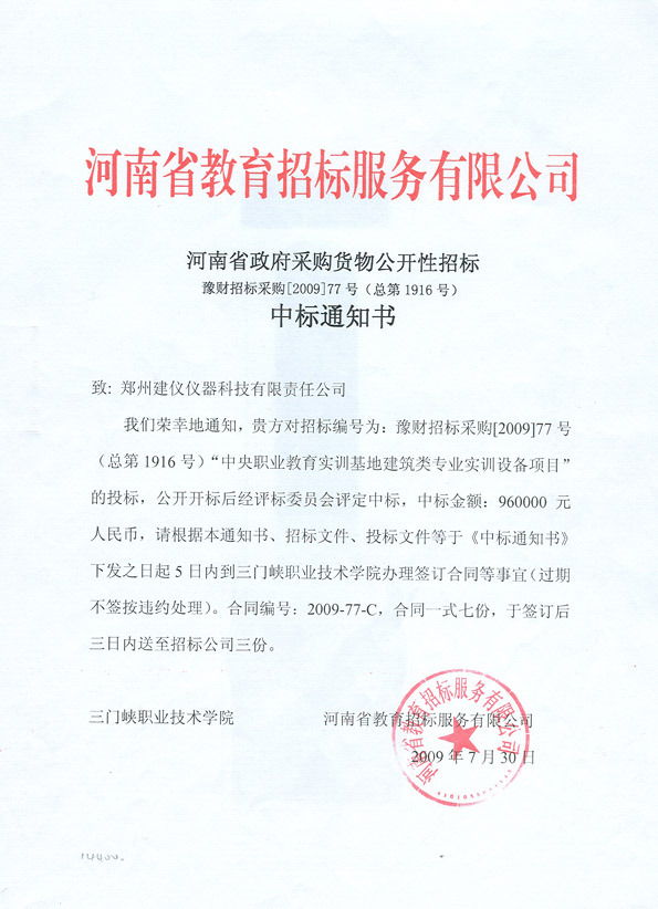 豫財招標(biāo)采購(2009)77號