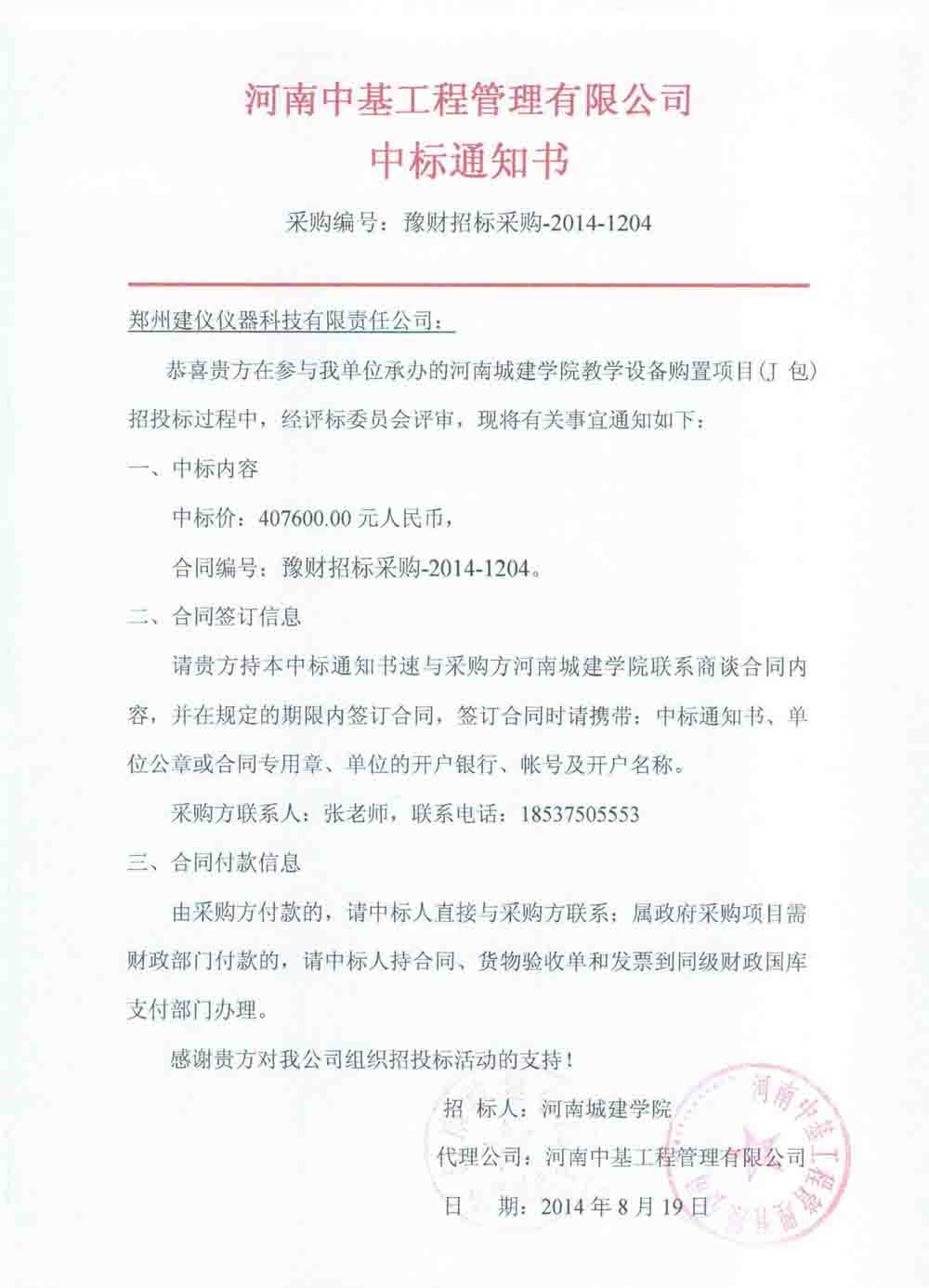 豫財(cái)招標(biāo)采購(gòu)2014-1204號(hào)J包